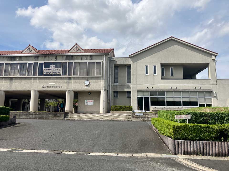 『松江市立湖北中学校』は打出町にある中学校です。最寄駅である一畑電車北松江線『朝日ヶ丘駅』から西へ徒歩約5分の距離。敷地の南側に「運転免許技能試験場」があり、さらに南方向に国道431号が通り、宍道湖が広がっています。1994年(平成6年)に,古江中・秋鹿中・大野中の3中学校が統合されて開校しました。学校教育目標は「心身ともに健康で 豊かな創造性とたくましい実践力をもつ生徒の育成」です。