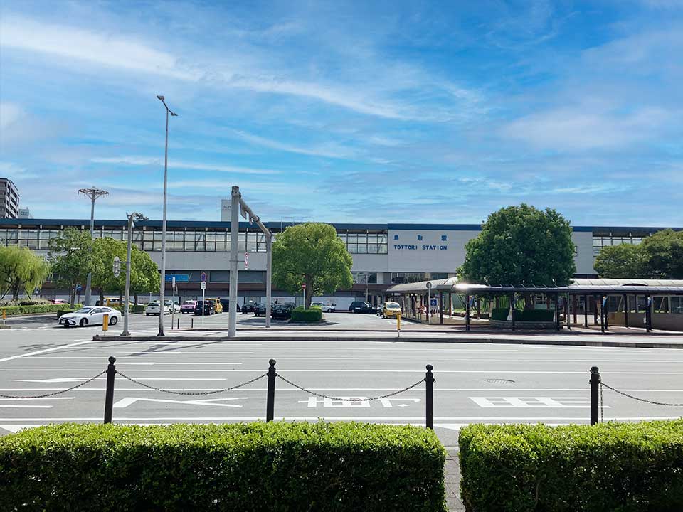 『鳥取駅』は鳥取市東品治町にあるJR山陰本線の駅です。山陰地方の東の玄関で、鳥取県の県庁所在地でもある鳥取市の代表駅。特急列車をはじめ、多くの列車の始発駅となっています。2023年(令和5年)度の1日当たりの利用者数(乗降人員)は9,060人。1907年(明治40年)に開業し、1994年(平成6年)には高架化され、駅構造は島式ホーム2面4線を持っています。ホームはいずれも駅の3階にあり、鳥取駅を含めて前後の区間は高架となっており、改札口から各ホームにエレベーターやエスカレーターが設置されています。本駅にはショッピング施設「シャミネ鳥取」がありファッション、カフェ、スイーツなどを展開。改札外にはコンビニや「おみやげ街道」、観光案内所などもあって便利です。駅前からは「ループ麒麟獅子バス」や100円循環バス「くる梨」に乗ることができるなど、観光の拠点としても活用できます。