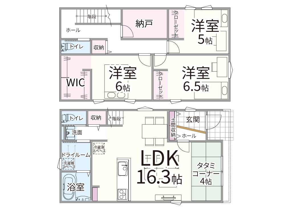 ※ 写真に写っている、またはパース(絵)や間取り図に描かれている家具や車などは、特にコメントがない場合、物件価格に含まれません。
